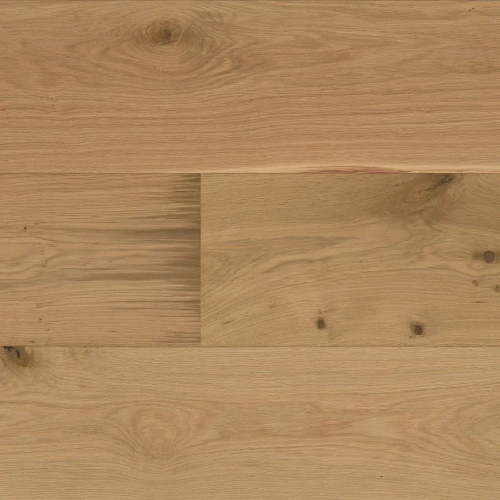 De matte uitstraling en het rustieke karakter zijn typerend voor deze prachtige parketvloer. De noesten op de planken doen de vloer leven en geven een natuurlijke uitstraling. Dit parket is gemaakt van een van de bekendste en populairste houtsoorten, namelijk Europees eikenhout. Met een toplaag van maar liefst 4mm is deze parketvloer een van de sterksten binnen ons assortiment.