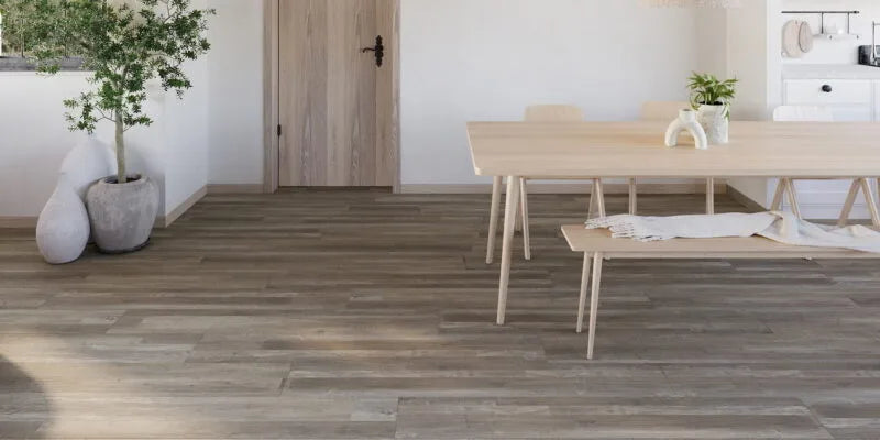 Eikdessin luxe vinylplanken in grijstinten voor een rustieke look.